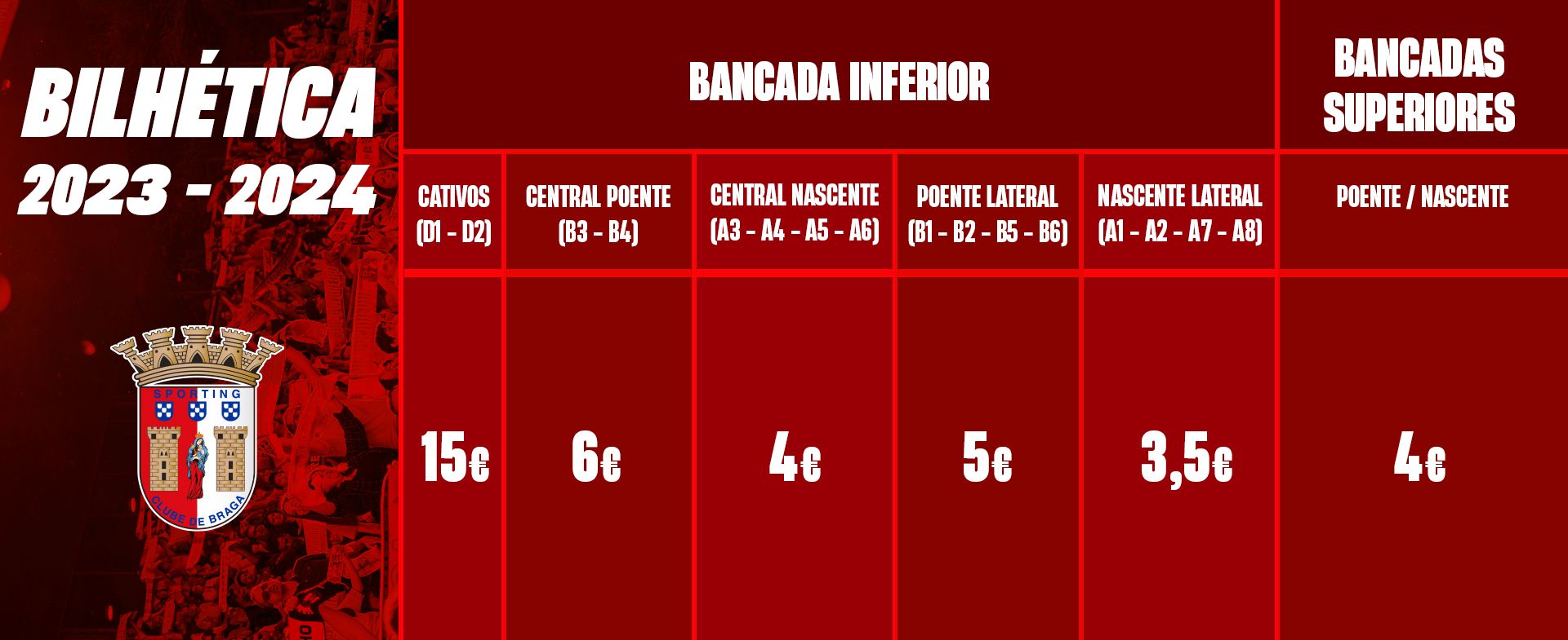 Acompanhante de Sócio – 3,5€ aos 15€ (depende da escolha da setorização)