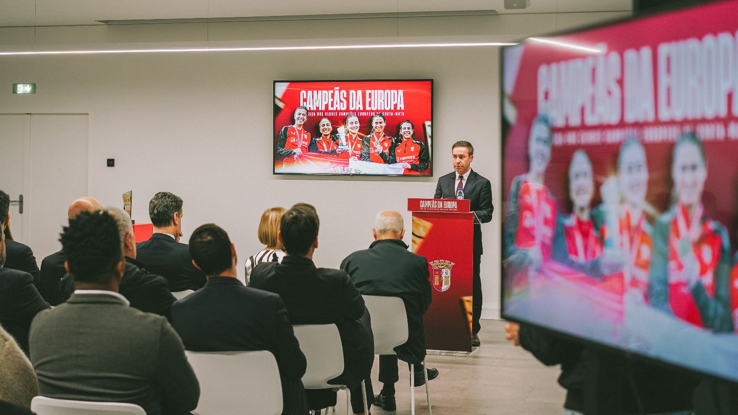 A equipa feminina de atletismo do SC Braga foi homenageada, esta terça-feira, após a conquista do título de Campeãs da Europa alcançado no passado domingo na Taça dos Clubes Campeões Europeus.