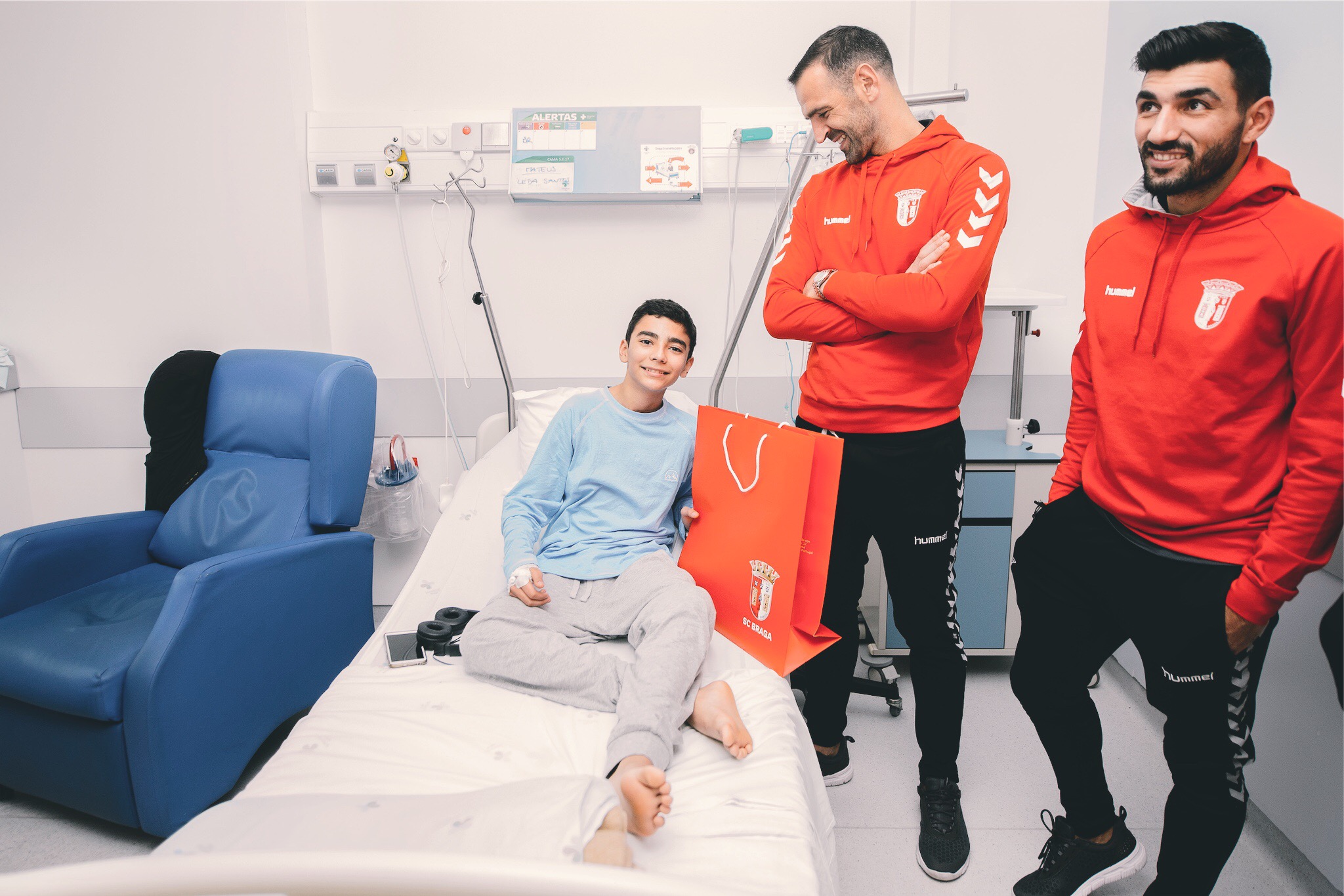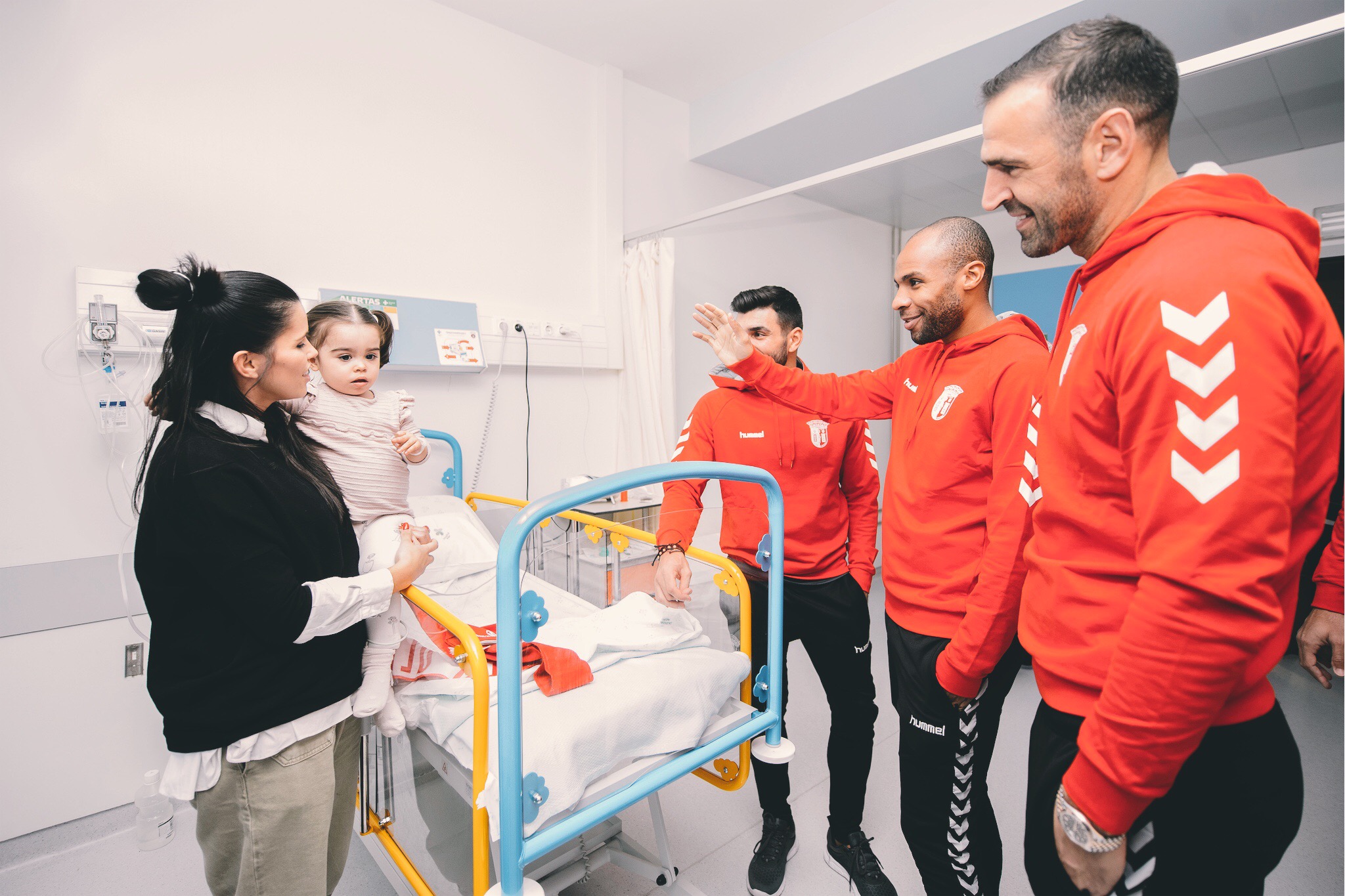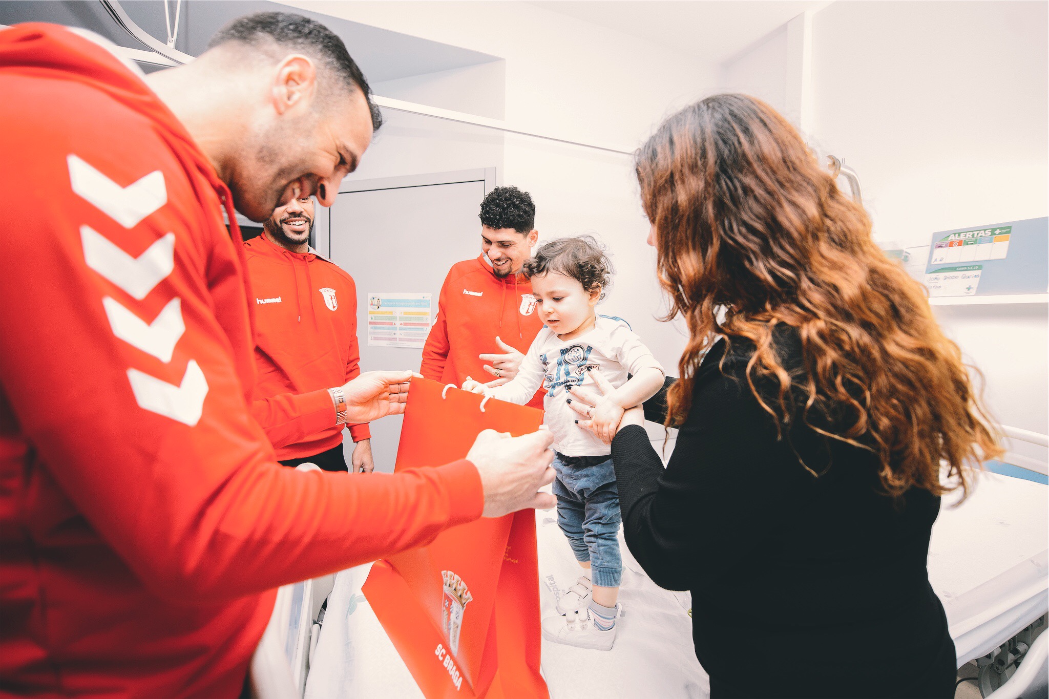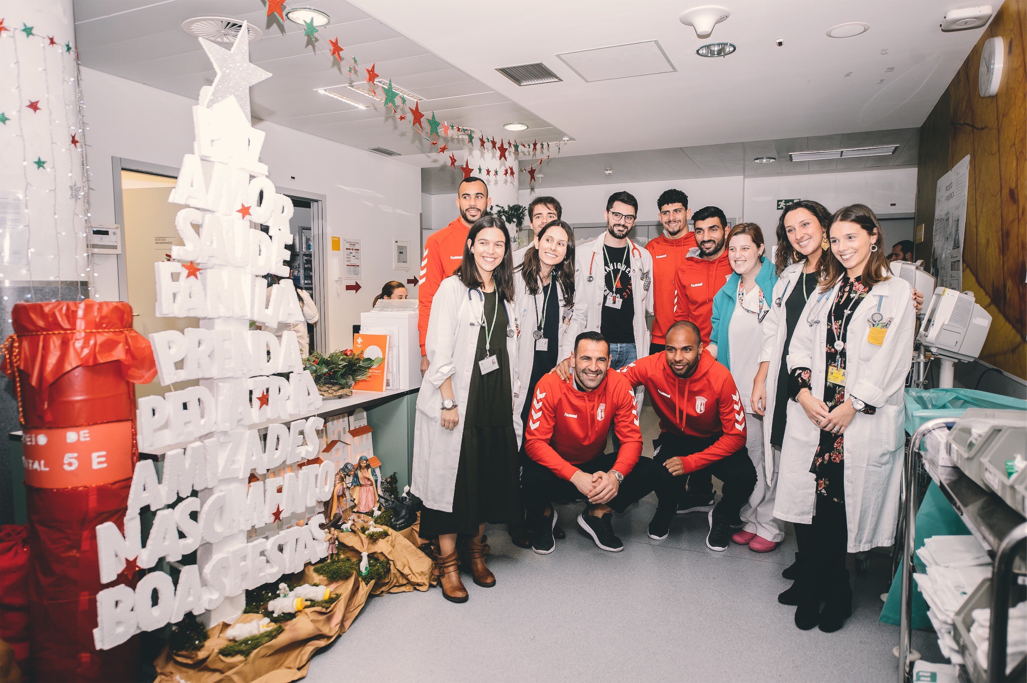 Os capitães do SC Braga (Wilson Eduardo, Fransérgio, Esgaio, Matheus e Eduardo) visitaram, esta sexta-feira, a ala pediátrica do hospital de Braga. Esta é uma iniciativa de Natal que já predura há vários anos e que tem um só objetivo: trazer sorrisos aos mais novos.