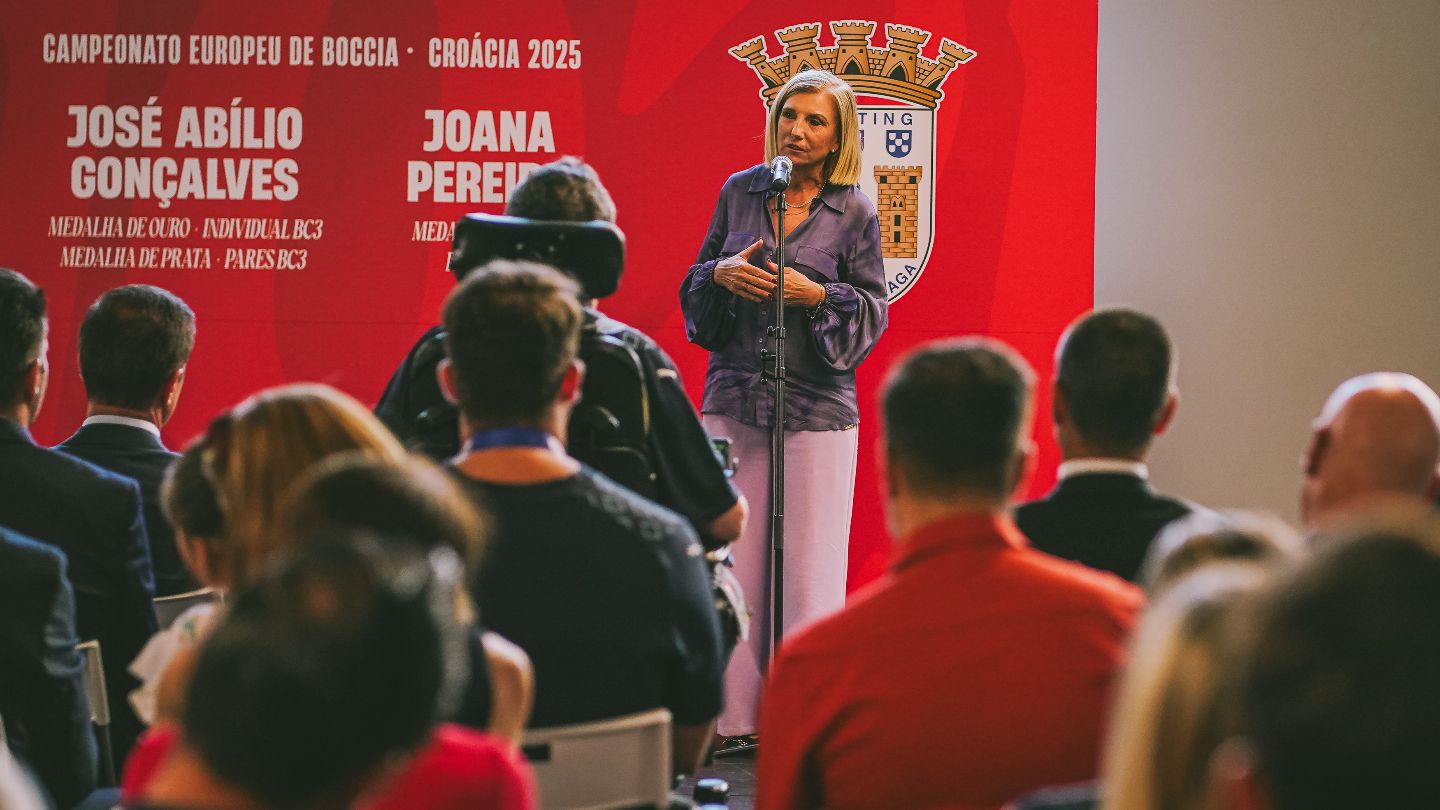 Cláudia Corais, diretora da secção de boccia do SC Braga, manifestou o profundo orgulho pelo percurso dos atletas: “Estou super orgulhosa. Temos imenso orgulho, José Abílio Gonçalves, e sabes do que estou a falar por teres conseguido tudo aquilo que conquistaste. Joana Pereira, também a ti, porque também foi importante estares lá e ajudares na prova de Pares. Além de vocês os dois, havia também duas pessoas por trás: o Paulo Correia e a Ana Catarina, que, juntamente convosco, ajudaram a conquistar as medalhas. Queremos dar os parabéns ao senhor presidente por nos ter proporcionado uma casa como esta, onde conseguimos treinar a qualquer hora, em qualquer dia, e ter à disposição todo o equipamento necessário e o espaço fundamental. Também agradecemos à Câmara de Braga por estar sempre presente e tentar ajudar-nos em tudo. Em meu nome pessoal e da secção, muito obrigada ao SC Braga, à Câmara Municipal de Braga e aos nossos atletas”.