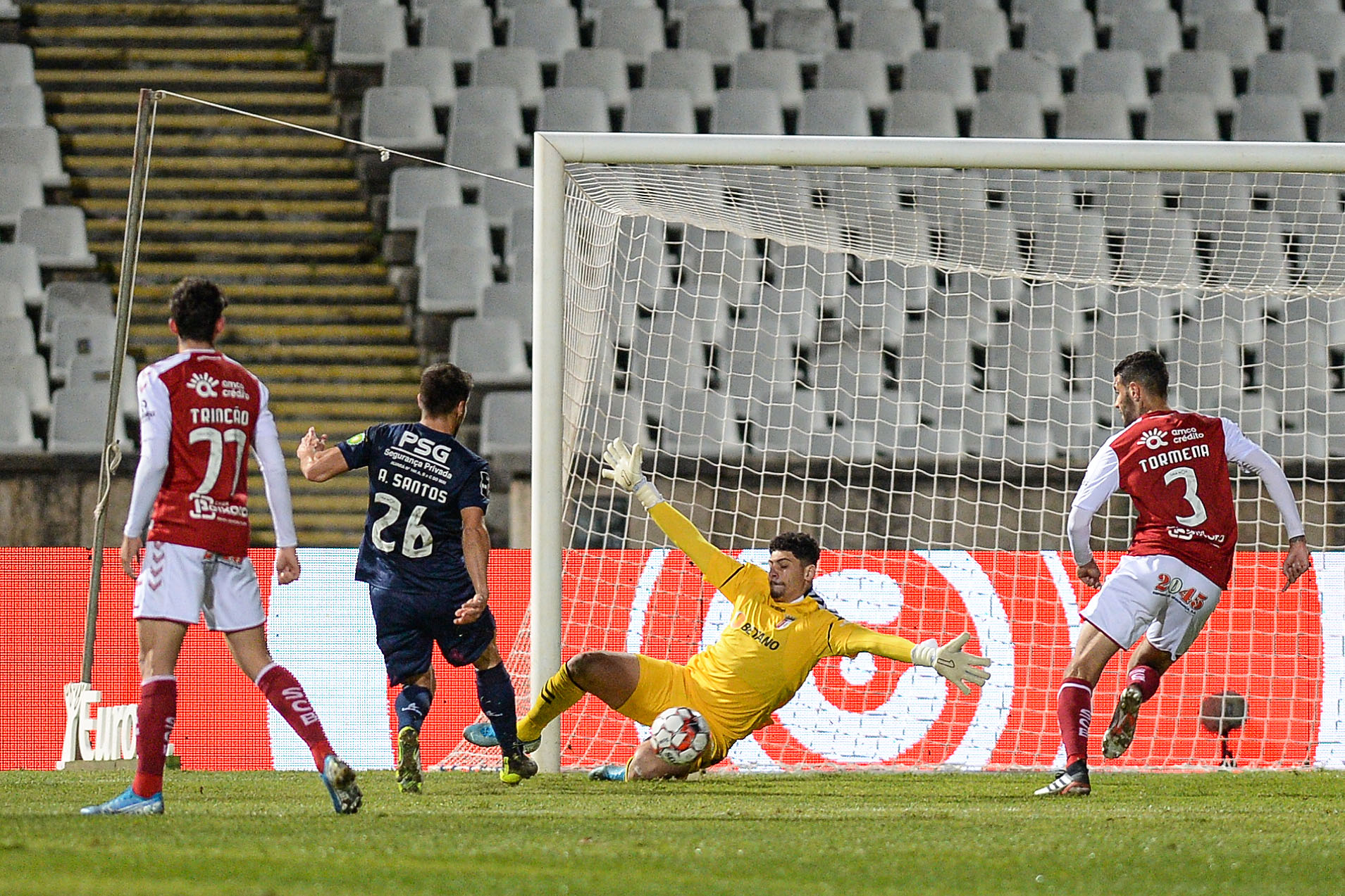 O SC Braga assumiu as despesas do jogo desde o início da partida. Logo aos 8 minutos, Ricardo Horta encheu o pé direito e fez o primeiro golo do conjunto arsenalista no ano civil e na era Rúben Amorim. Como todos sabemos, o futebol não é só golos e é preciso haver muito coração. Quatro minutos depois de Ricardo Horta abrir o ativo, Matheus encheu a baliza com duas grandes defesas e Tormena cortou sobre a linha de golo evitando o empate numa ‘tripla ocasião’ dos Azuis do Restelo. O Belenenses assustou e o SC Braga despertou novamente com mais um golo. Aos 19’, Sequeira cruzou com conta, peso e medida e Trincão encostou para mais uma explosão de alegria dos adeptos do SC Braga presentes no Jamor. Os Gverreiros não baixaram o ritmo e três minutos depois dilataram a vantagem. Numa transição perfeita da turma bracarense, Ricardo Horta bisou e fez o 14º golo esta temporada, provando que está a viver o melhor momento de forma da sua carreira. O Belenenses SAD conseguiu reagir e, à passagem do minuto 31’, Silvestre Varela reduziu a desvantagem da formação natural de Belém. Em cima do apito para o descanso, Palhinha atirou uma bomba para o fundo da baliza defendida por Koffi e fez o quarto dos vermelhos e brancos.