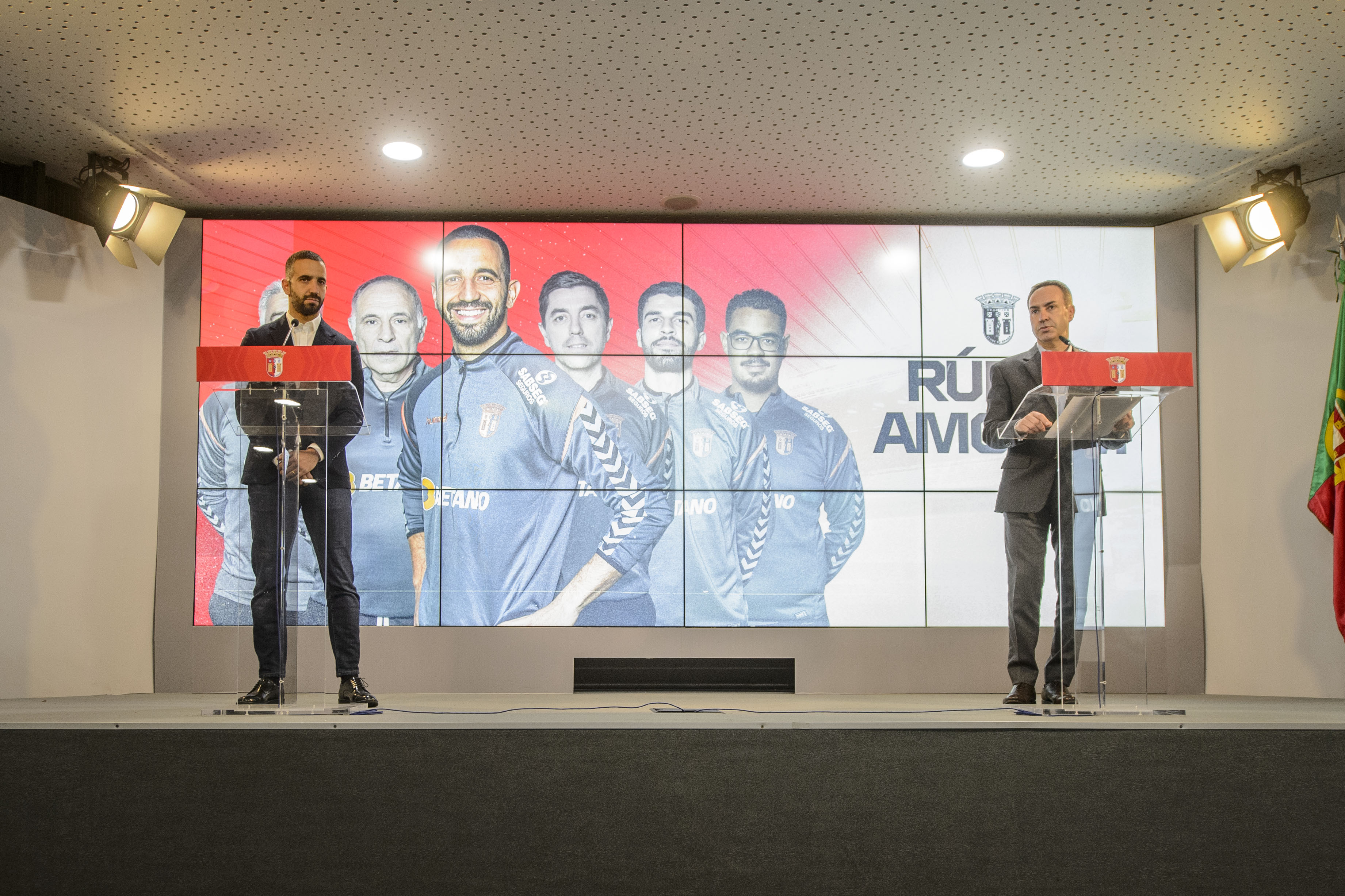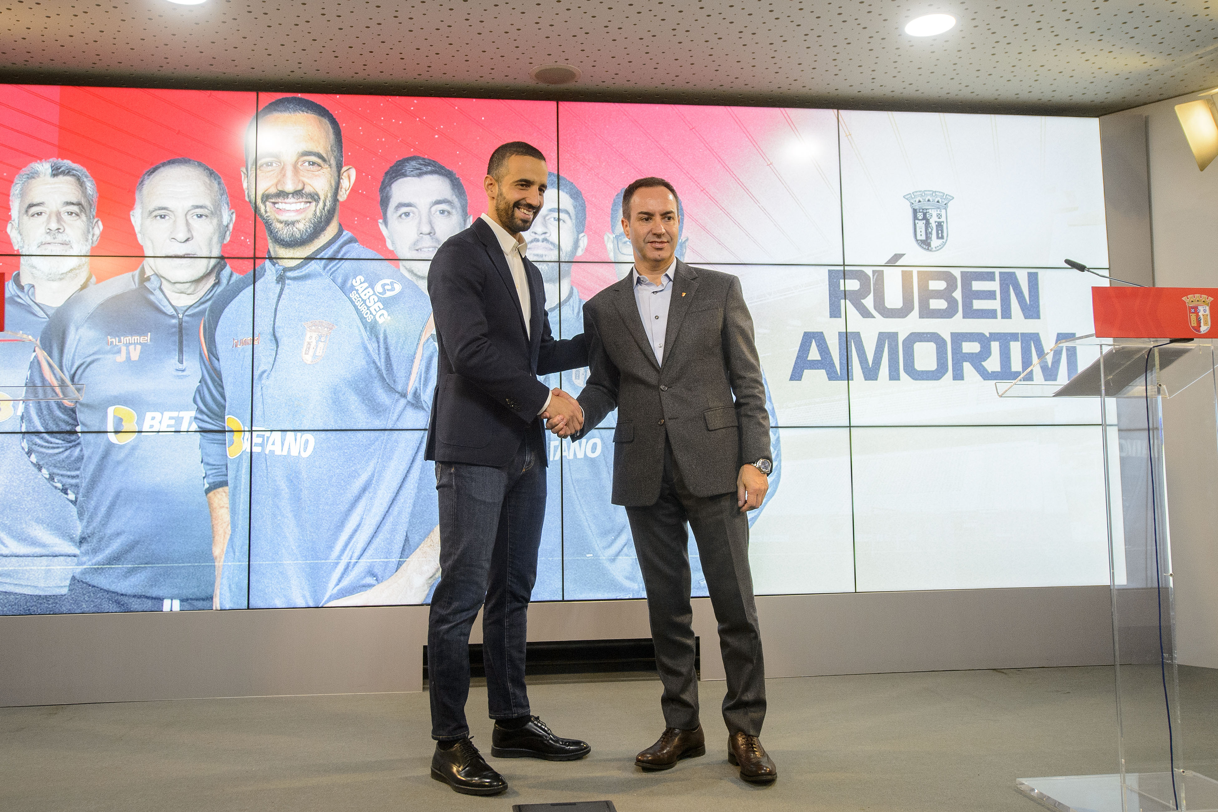 Na sua primeira aparição como técnico principal do SC Braga, Rúben Amorim mostrou-se feliz com este novo ciclo na sua carreira. O novo treinador dos Gverreiros do Minho agradeceu a confiança do presidente António Salvador e sublinhou a vontade de criar uma identidade no clube. Rúben Amorim teceu ainda fortes elogios ao plantel que tem à sua disposição e prometeu que o conjunto arsenalista estará preparado para todos os desafios que irá enfrentar.