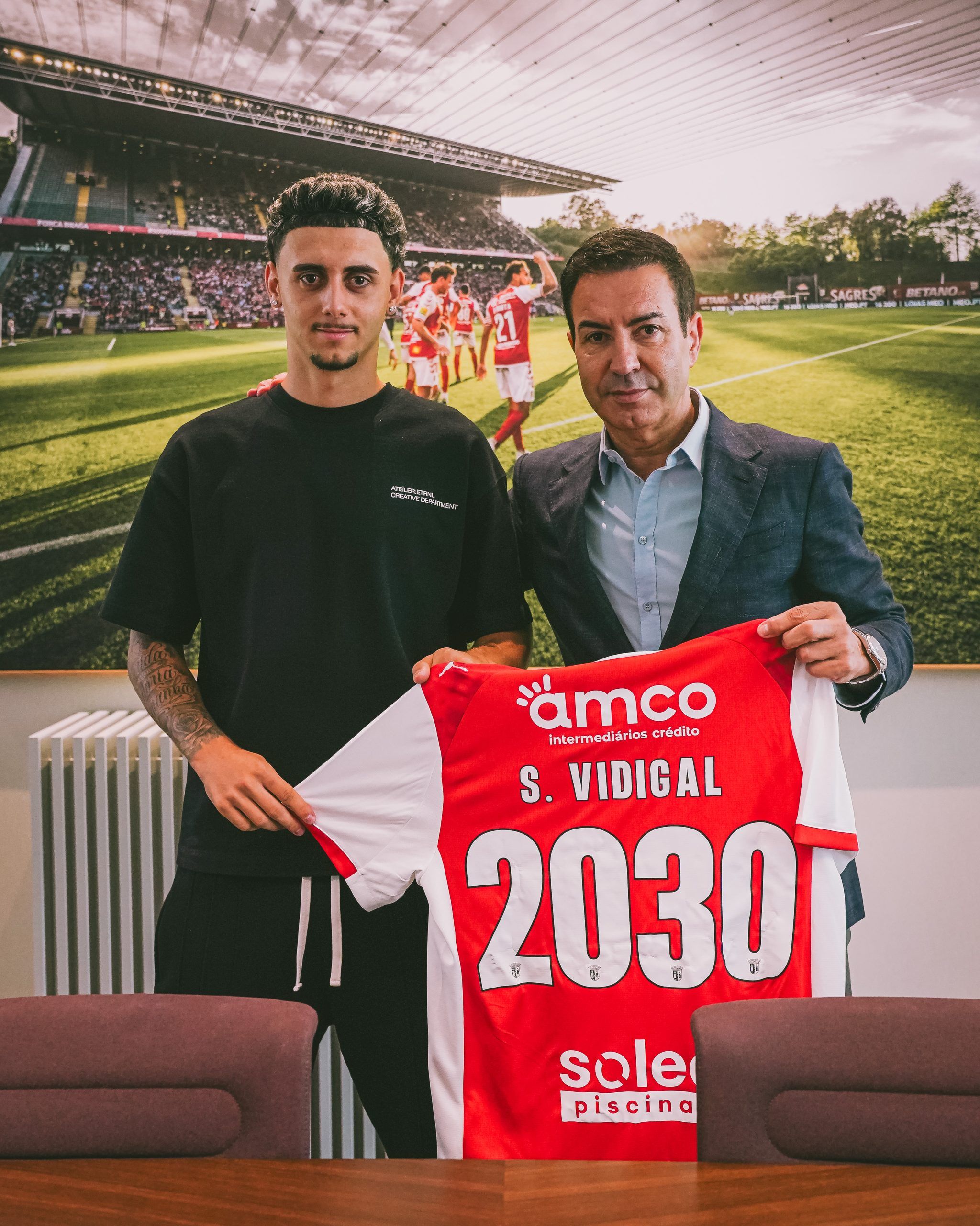 Sandro Vidigal renovou contrato com o SC Braga e assinou um novo vínculo válido até 2030. O contrato inclui ainda uma cláusula de rescisão fixada em 50 milhões de euros.