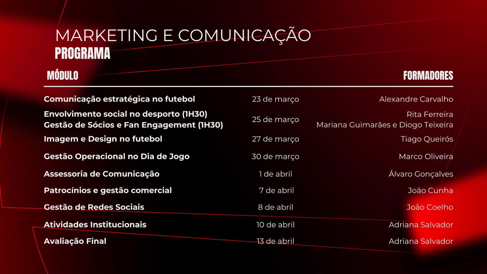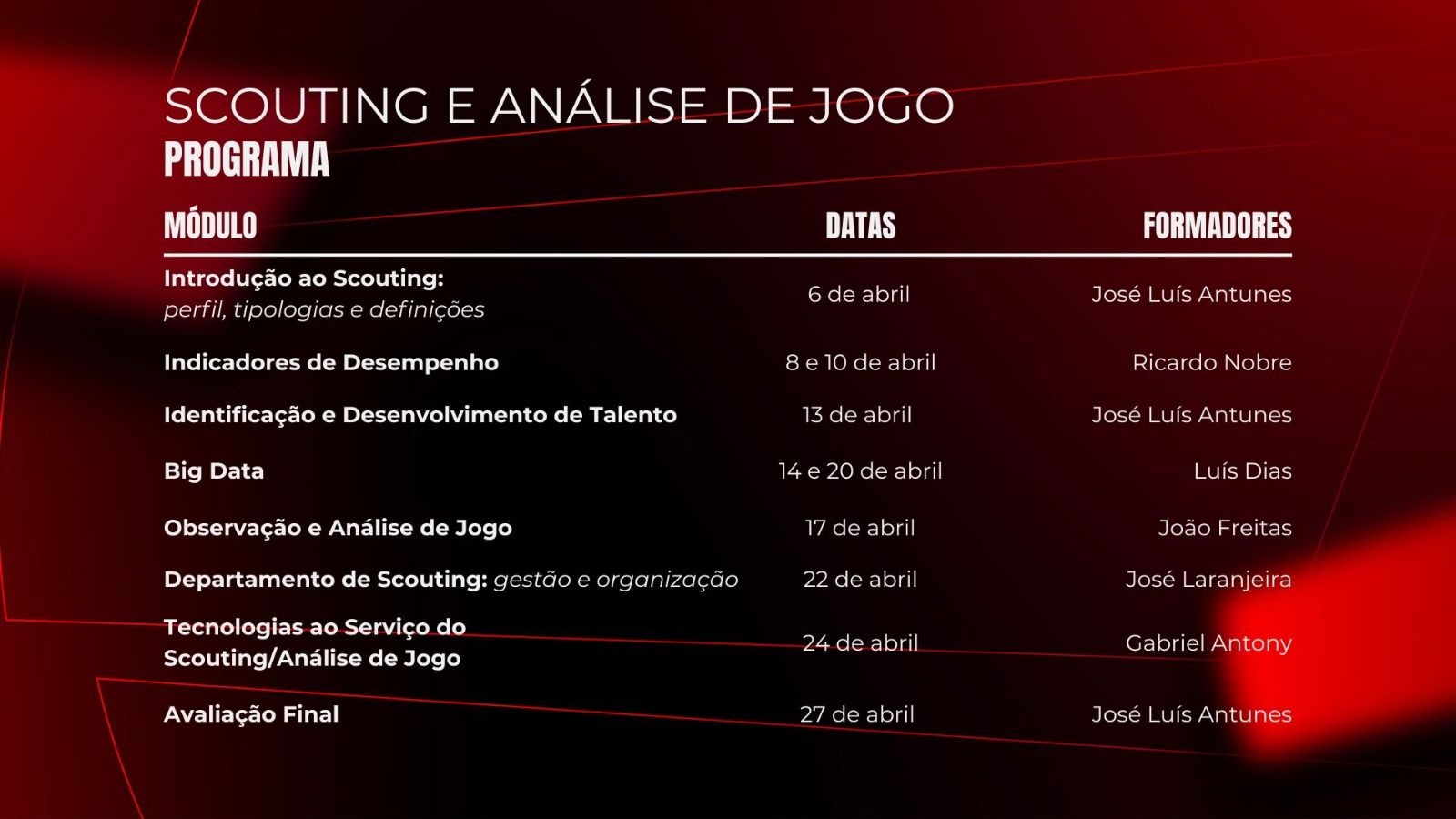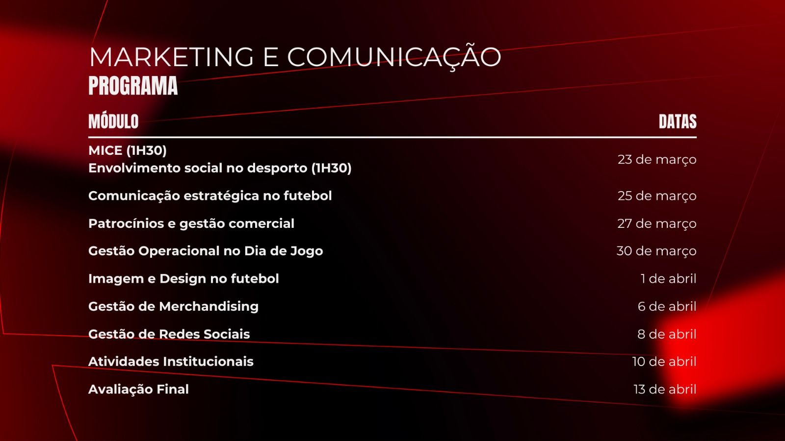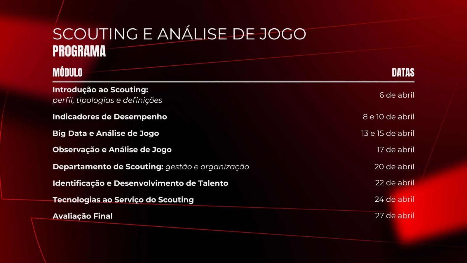 - Datas: a confirmar;