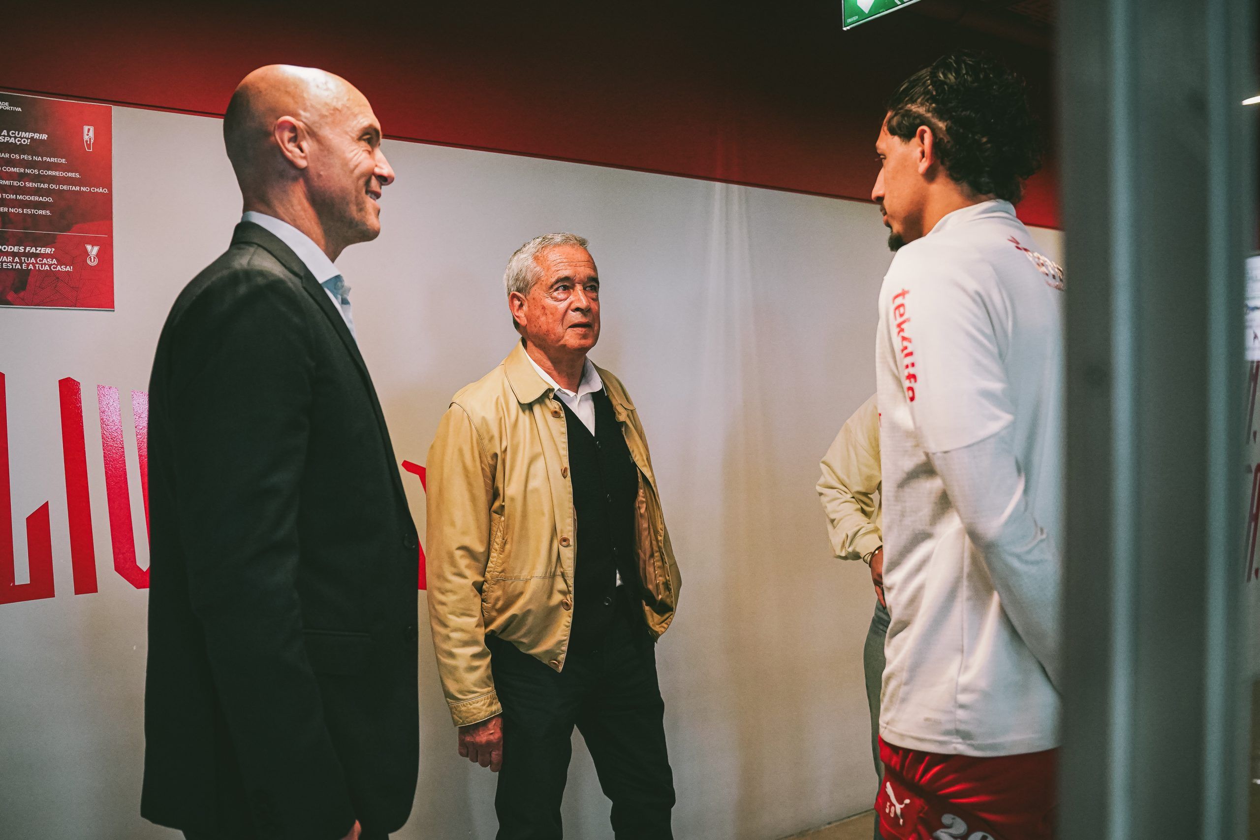 A visita prosseguiu com a entrada nas instalações da equipa principal, incluindo o balneário, permitindo um olhar próximo sobre a realidade do futebol profissional do Clube. Num momento de especial proximidade, Carlos Garcia cumprimentou o plantel principal, acompanhando parte da sessão de treino.