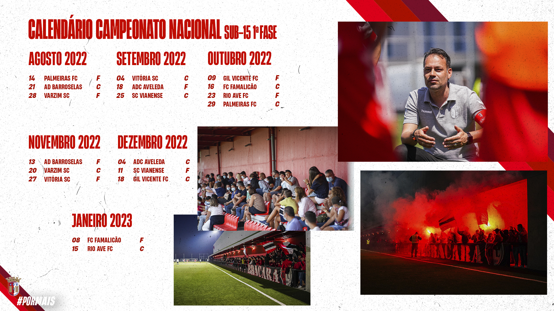 Os Sub-15 do SC Braga estão inseridos na série A onde vão enfrentar nove equipas nesta primeira fase do campeonato, a duas voltas (casa e fora).