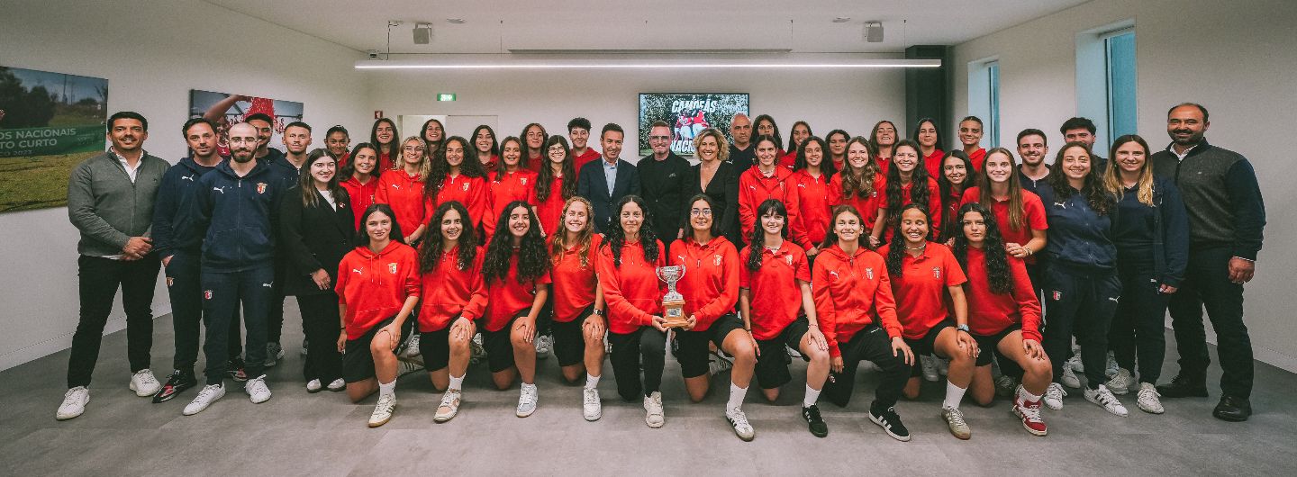 A equipa feminina sub-19 foi homenageada, esta tarde, pela conquista da Liga Feminina Sub-19.