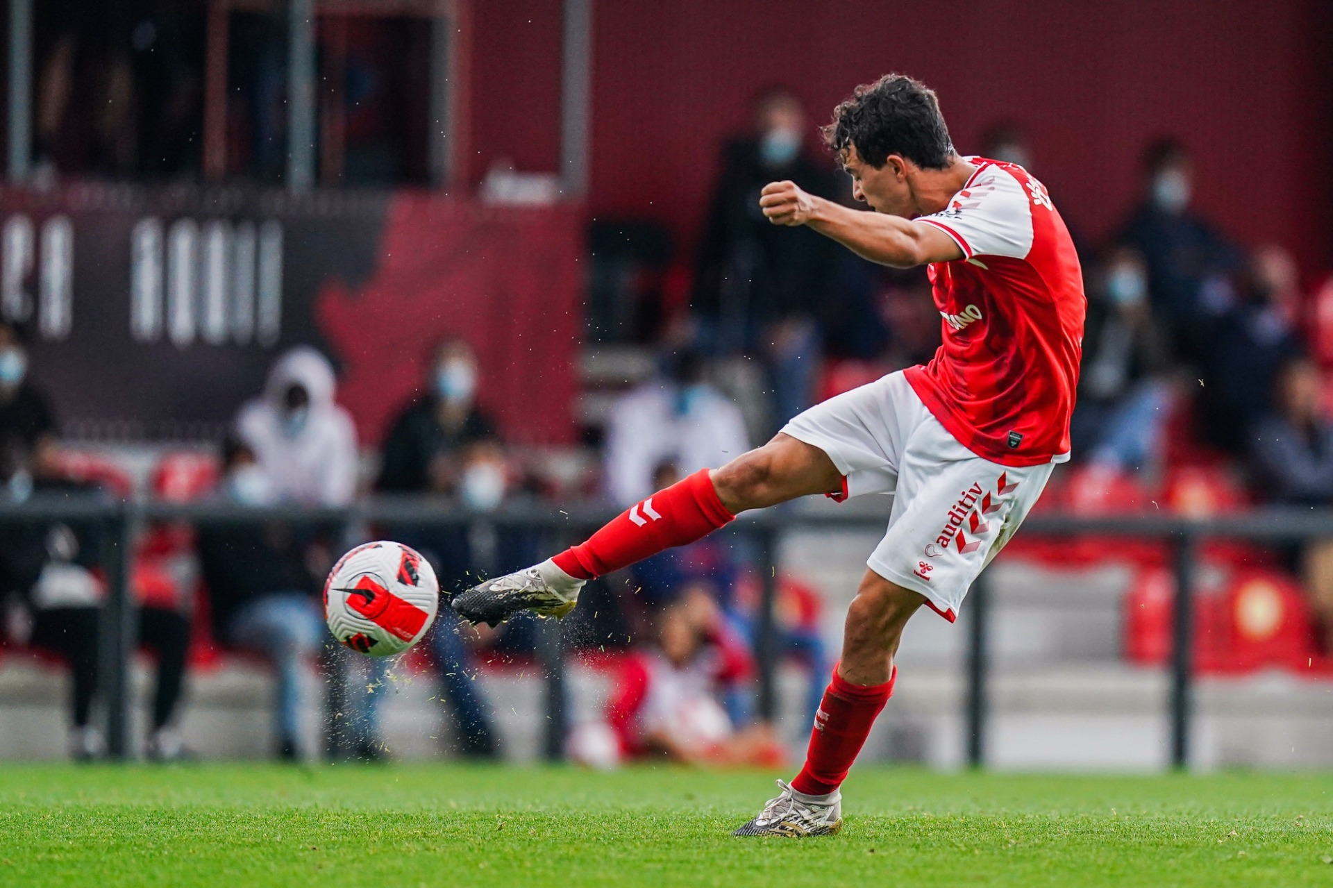 No primeiro tempo, os minhotos entraram logo com vontade de inaugurar o marcador. Aos 11 minutos, Lacximicant rematou dentro da área e a bola rasou o poste da baliza adversária. Três minutos depois, foi a vez de Macedo testar o guarda-redes adversário, obrigando-o a uma grande intervenção, negando o primeiro golo dos Gverreiros. O jogo seguiu empatado a zeros para o intervalo.
