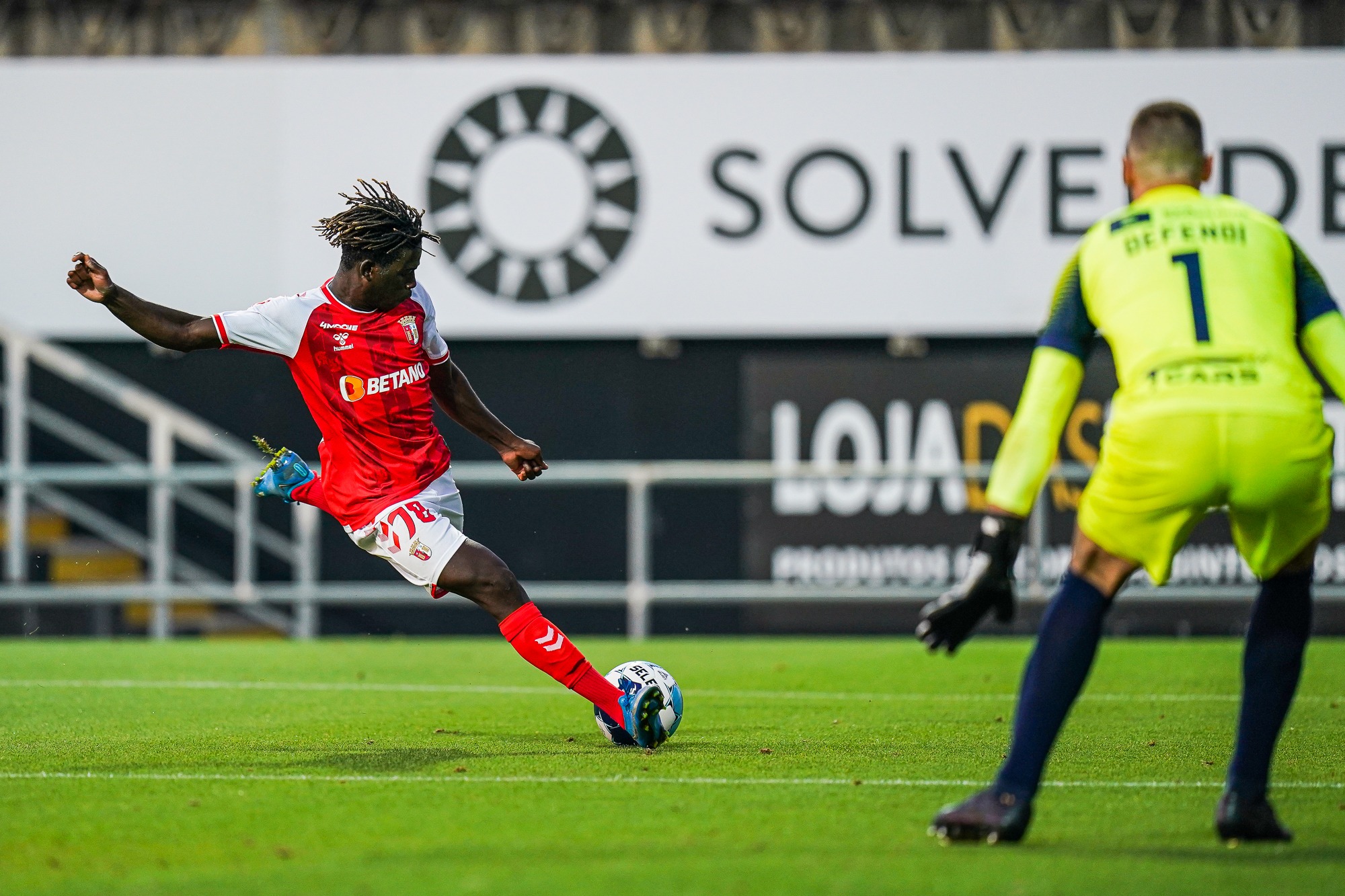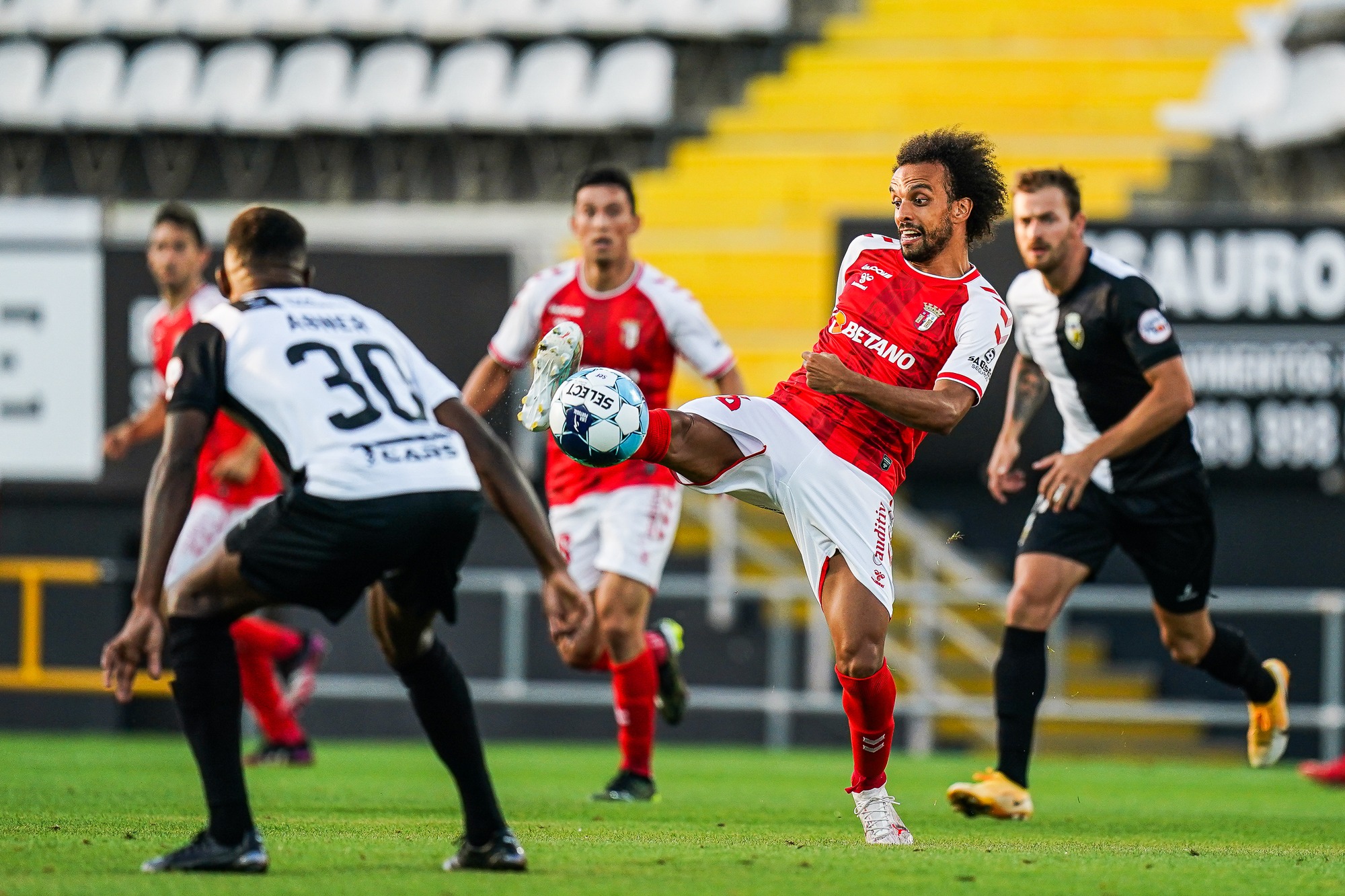 A partida continuou com um ritmo altíssimo e as oportunidades iam-se dividindo. Aos 23’, Paulo Oliveira cortou a bola em cima da linha e evitou o golo da formação natural de Faro. À passagem da meia hora, Roger atirou forte para uma bela intervenção de Defendi. A equipa minhota teve ainda mais uma chance para inaugurar o marcador no primeiro tempo. A dois minutos do apito para o descanso, Sequeira colocou a bola a rasar o poste na conversão de um livre direto.