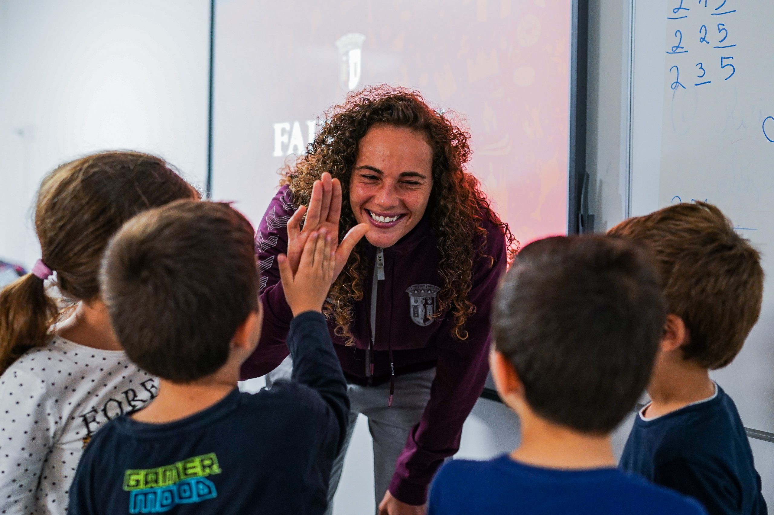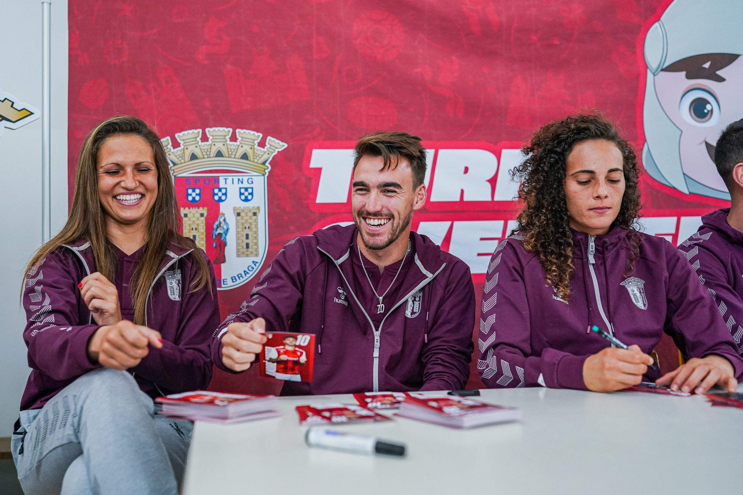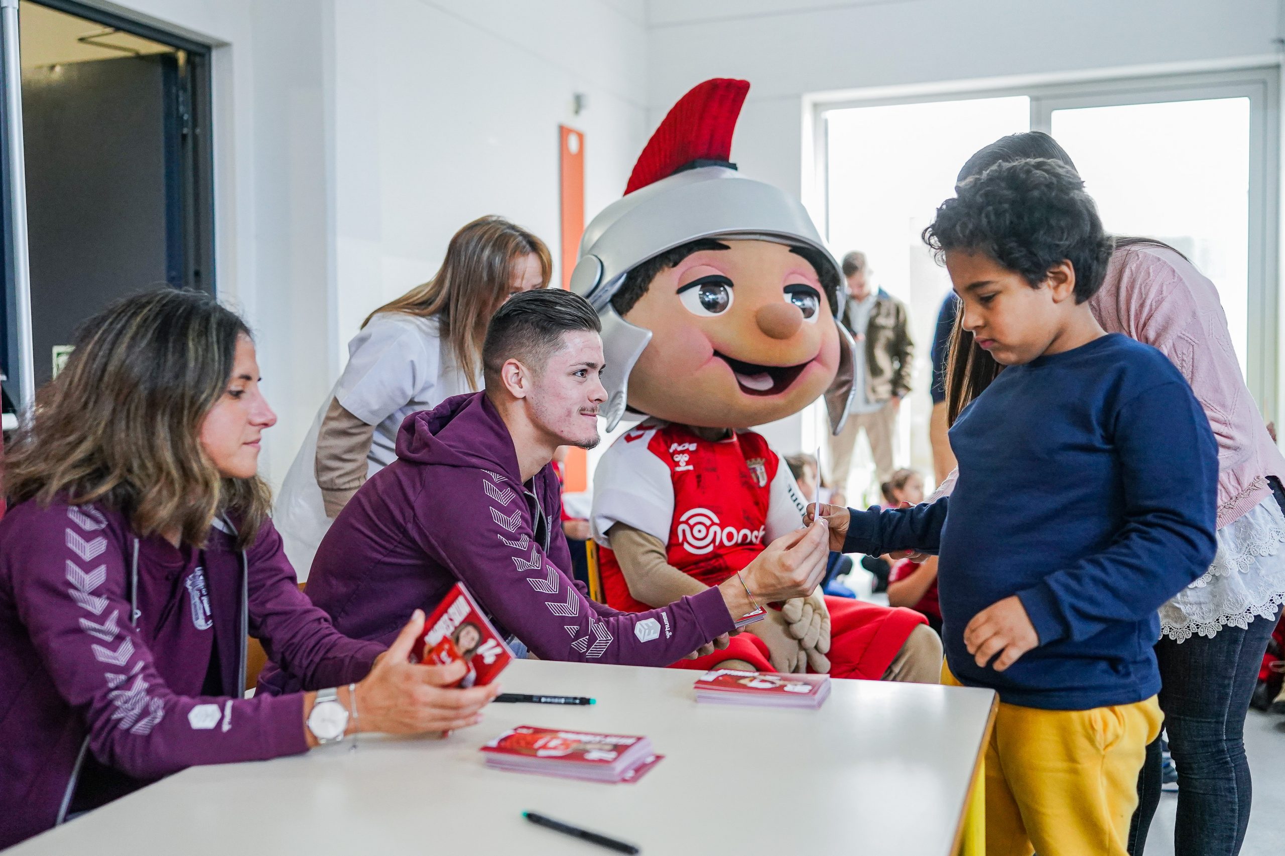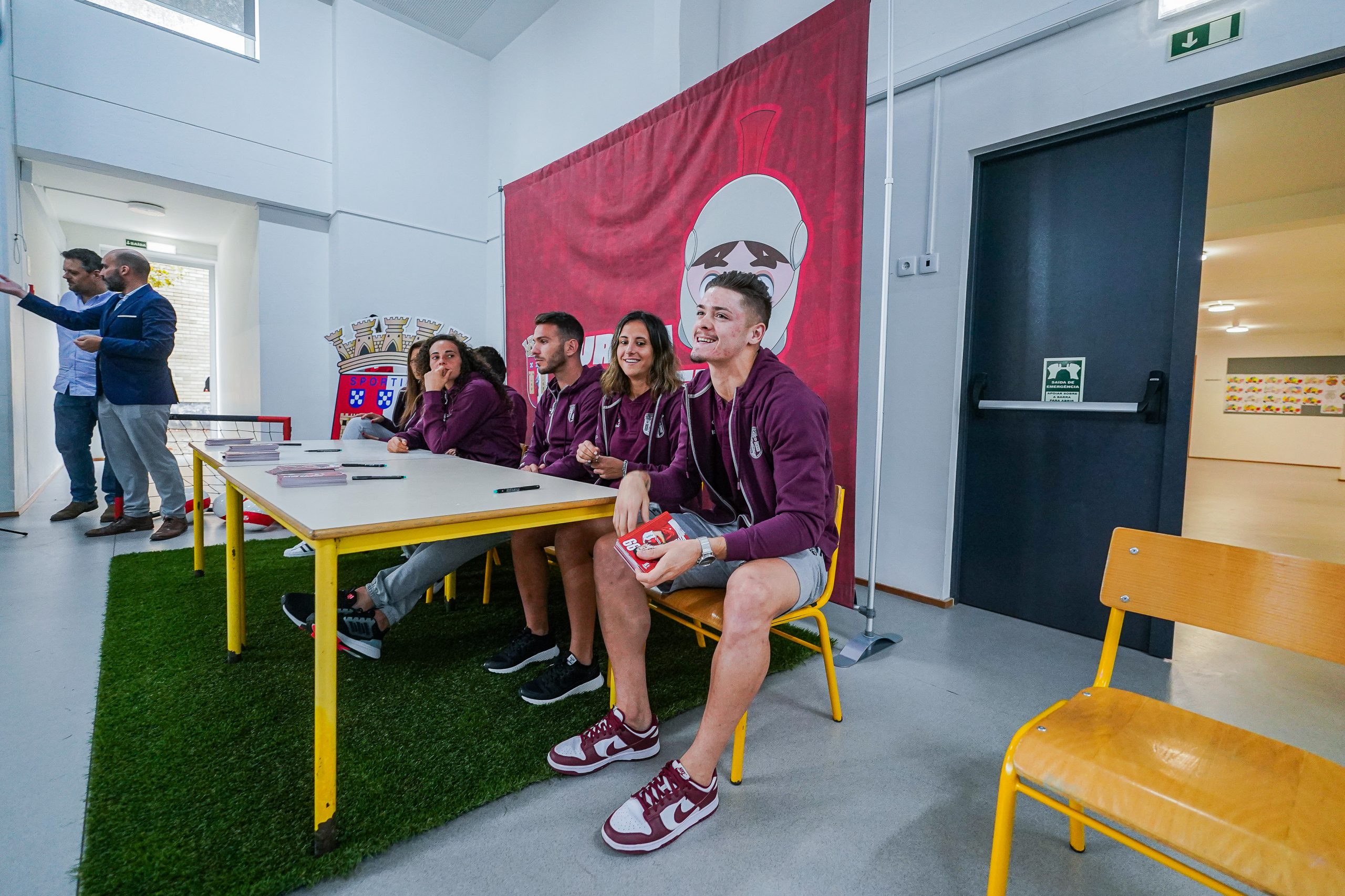 Três jogadores da equipa A masculina (André Horta, Sequeira e Vitinha) e três jogadoras da equipa A feminina (Dolores Silva, Patrícia Morais e Vanessa Marques fizeram as delícias dos jovens Gverreiros. Os alunos da Escola Básica de Gualtar a oportunidade de interagir com os jogadores, que ainda distribuíram autógrafos pelas várias turmas do estabelecimento escolar.